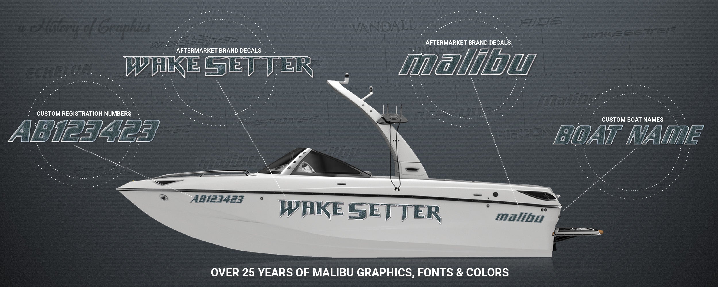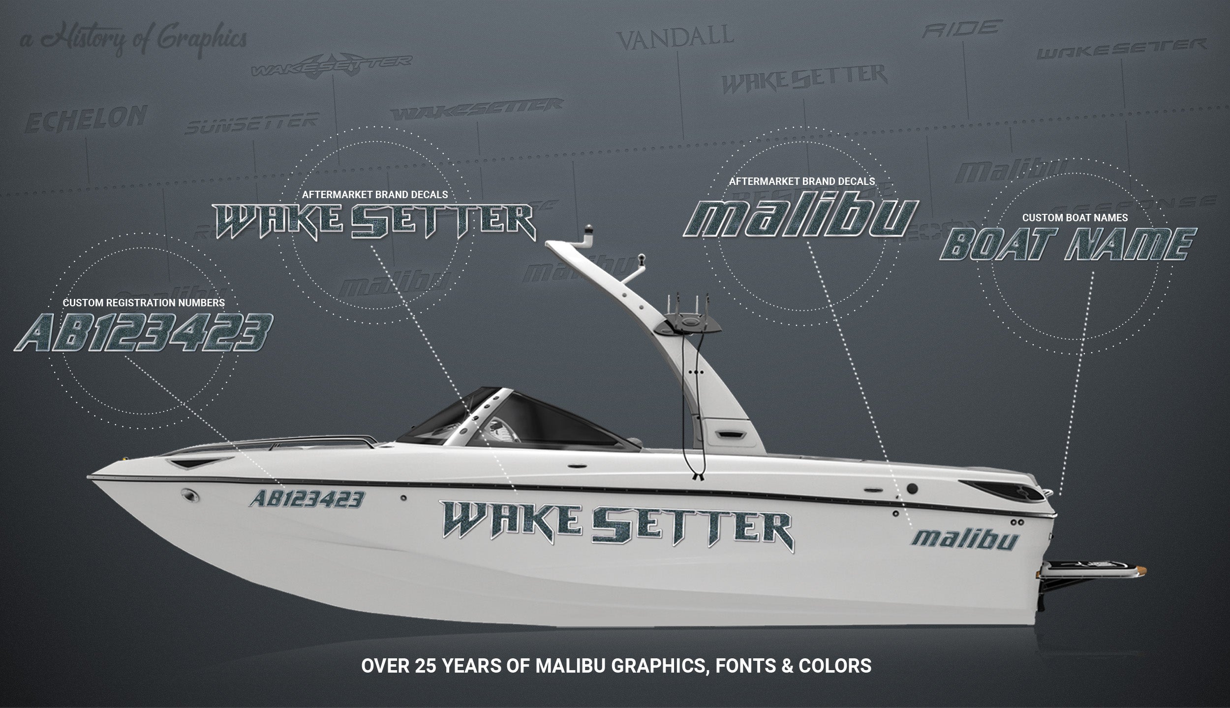 2010-2013 Malibu Wakesetter Domed Boat Decal, Choose Your Own Colors