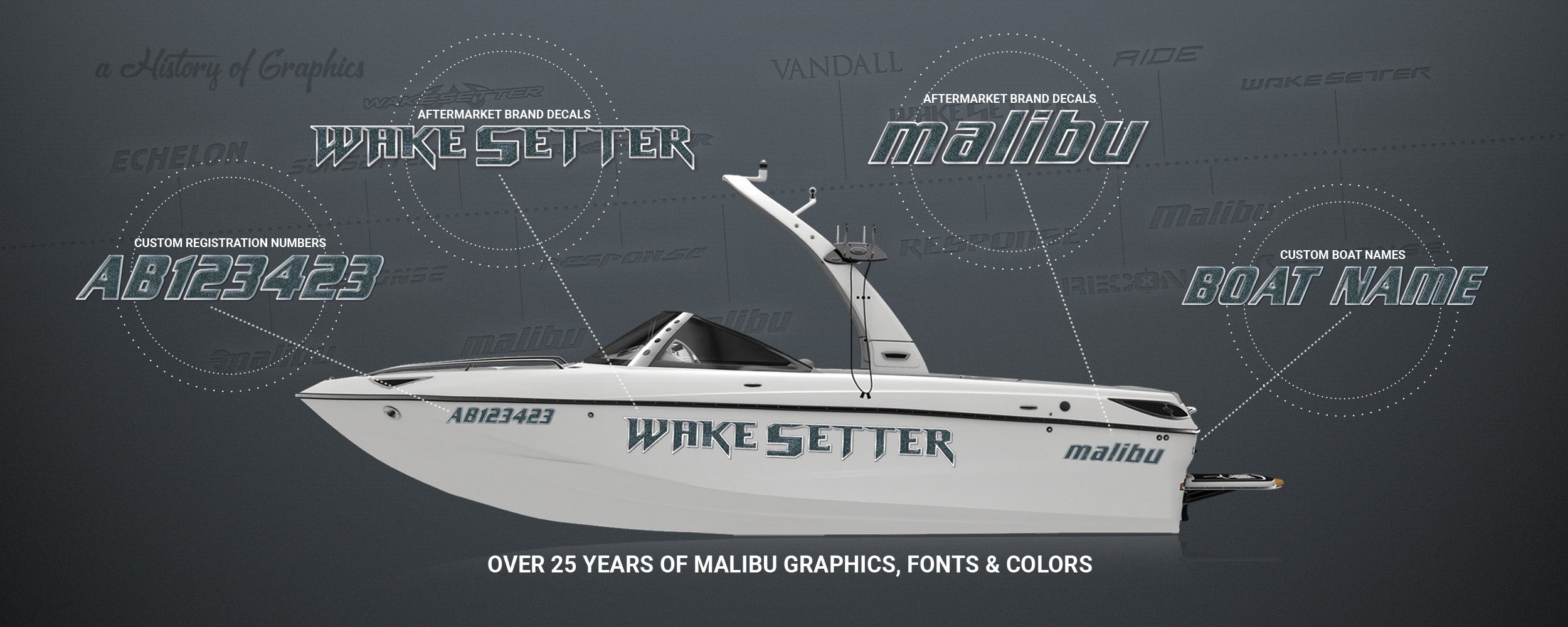 2010-2013 Malibu Wakesetter Domed Boat Decal, Choose Your Own Colors
